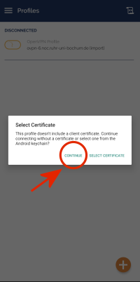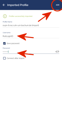 Hinweis: Sollte später die OpenVPN-Verbindung mit der obigen Datei nicht funktionieren, können Sie stattdessen die folgende Datei versuchen: OpenVPN_tcp4_RUB.ovpn.